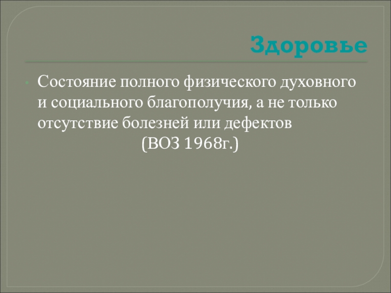 Состояние полного физического духовного и социального благополучия, а не только отсутствие