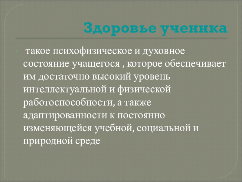 такое психофизическое и духовное состояние учащегося , которое обеспечивает