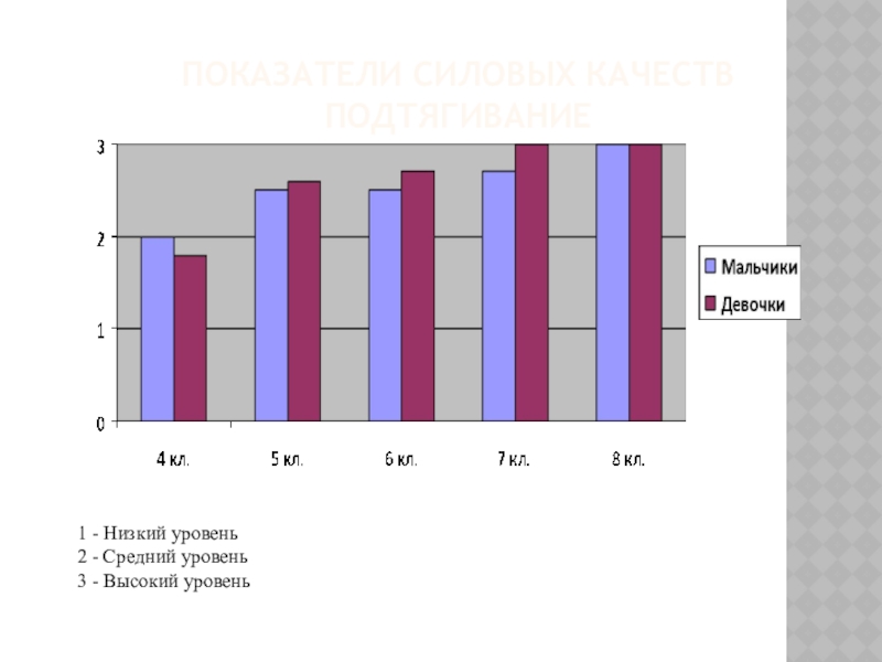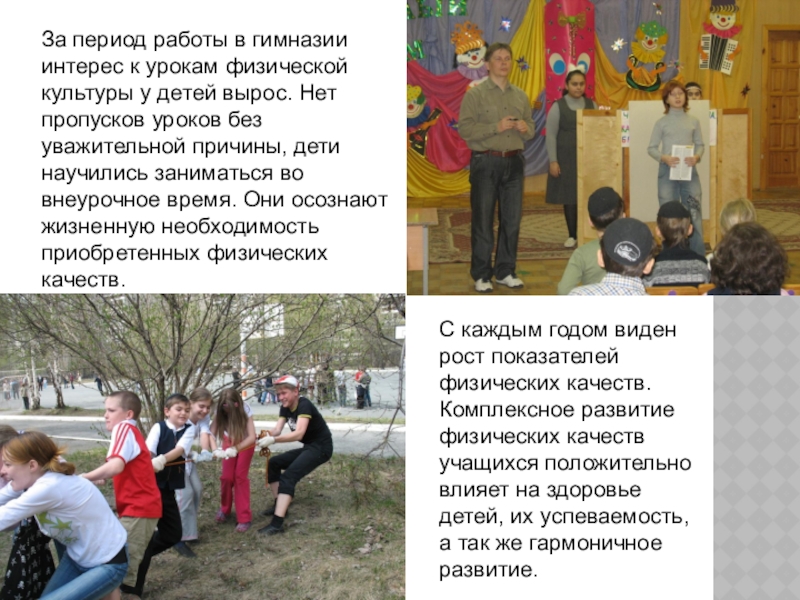 С каждым годом виден рост показателей физических качеств. Комплексное развитие физических качеств учащихся положительно влияет на здоровье детей, их успеваемость, а так же гармоничное развитие.