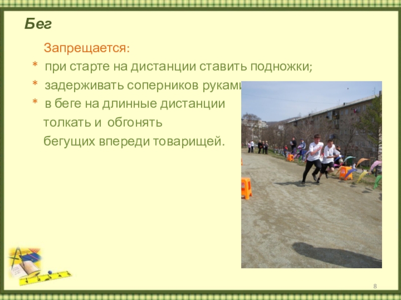 во время передвижений смотреть вперёд, соблюдать достаточные интервал и дистанцию, избегать столкновений.