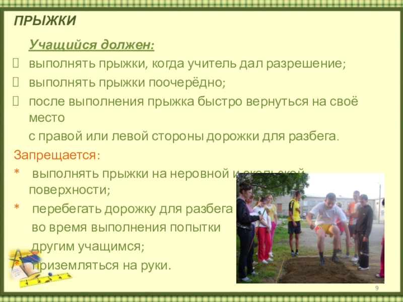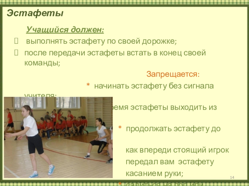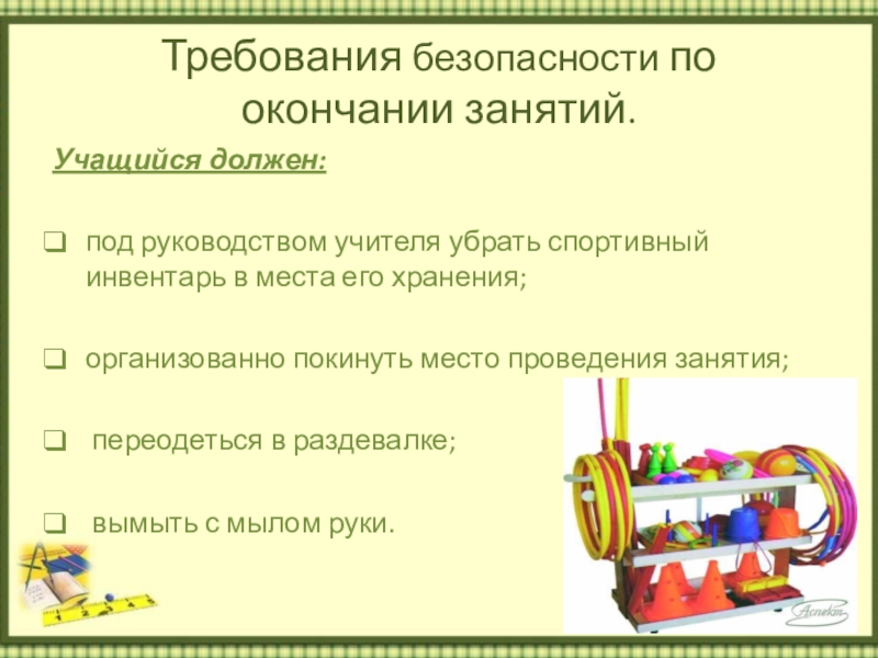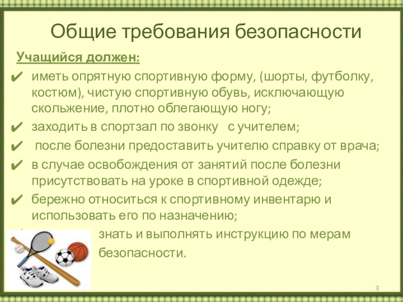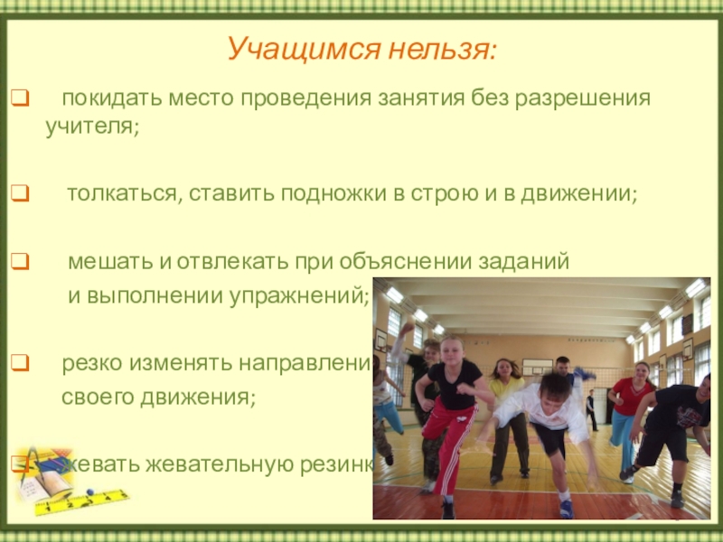 брать спортивный инвентарь и выполнять упражнения с разрешения учителя;