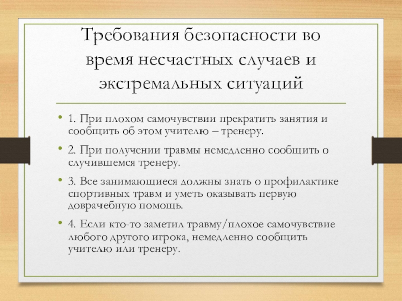 4. Если кто-то заметил травму/плохое самочувствие любого другого игрока, немедленно сообщить учителю или тренеру.