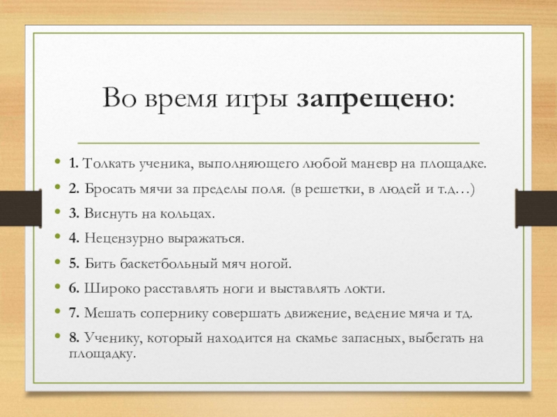 Слайд 9Требования безопасности во время игры в «Баскетбол»