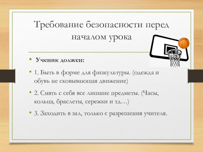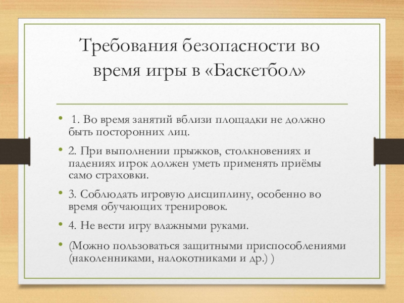 Слайд 1«Техника безопасности при игре в баскетбол на уроках физической культуры»