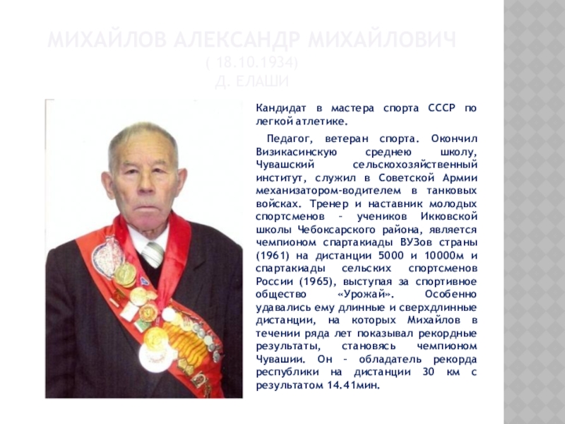 Учитель, многократный чемпион РСФСР и ЧАССР в беге