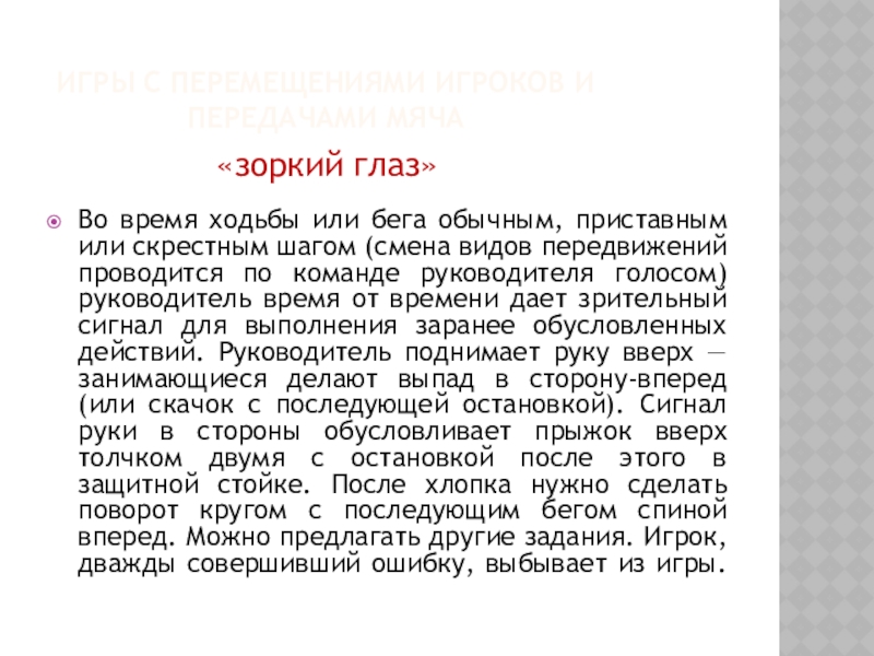 Слайд 3Игры с перемещениями игроков и передачами мяча
