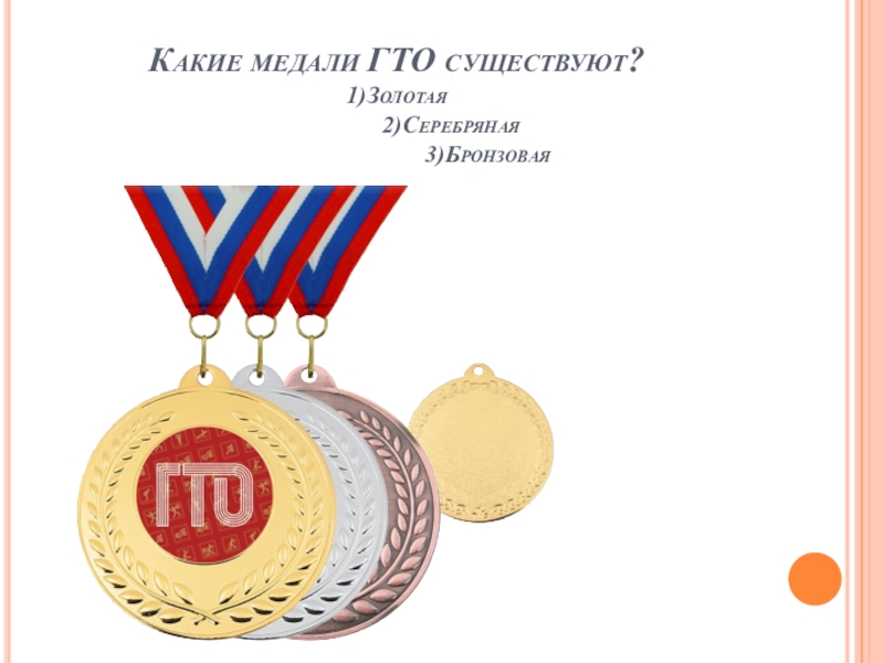 Слайд 9 Какие медали ГТО существуют? 1)Золотая