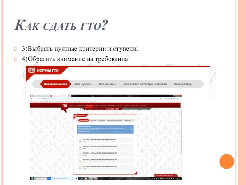Как сдать гто?3)Выбрать нужные критерии и ступени.4)Обратить внимание на требования!