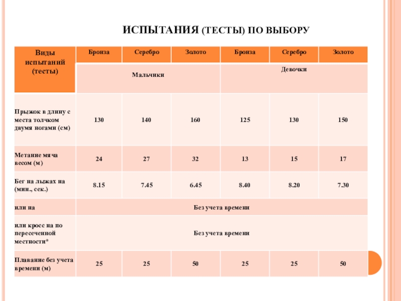 Слайд 13ИСПЫТАНИЯ (ТЕСТЫ) ПО ВЫБОРУ