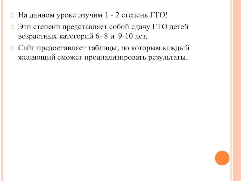 Слайд 7На данном уроке изучим 1 - 2 степень ГТО!