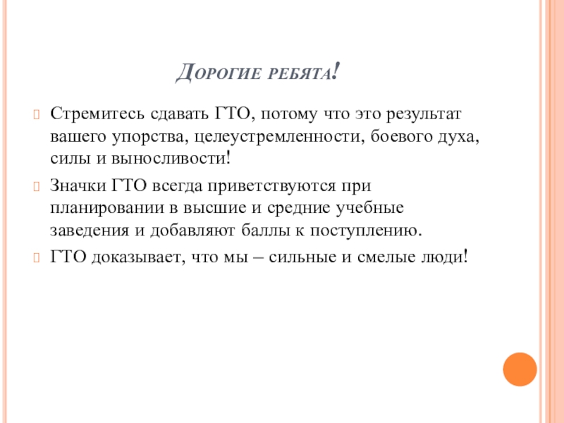 Дорогие ребята!Стремитесь сдавать ГТО, потому что это результат вашего упорства, целеустремленности, боевого духа, силы и выносливости!Значки ГТО