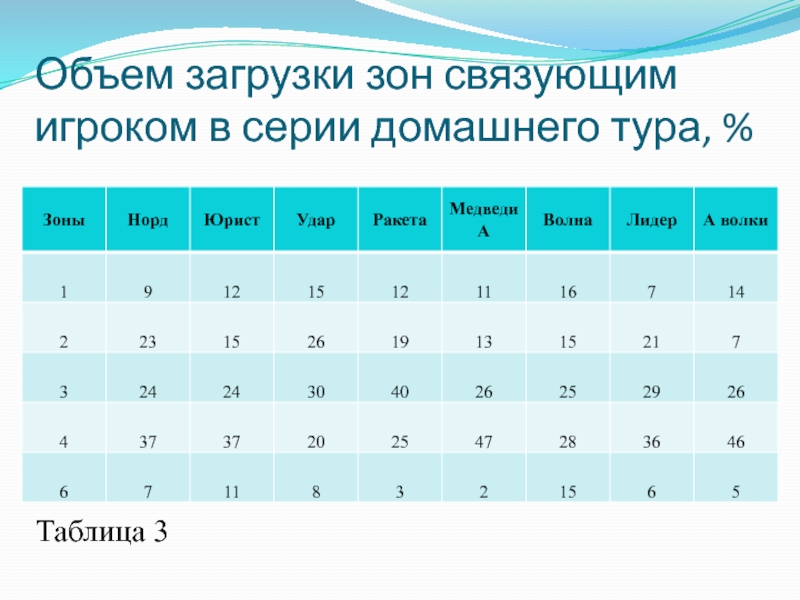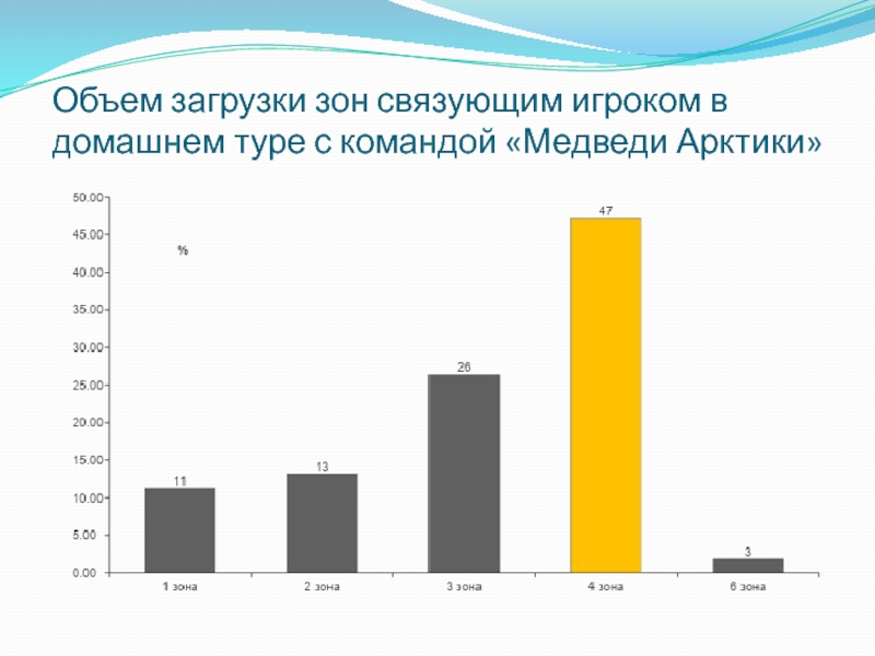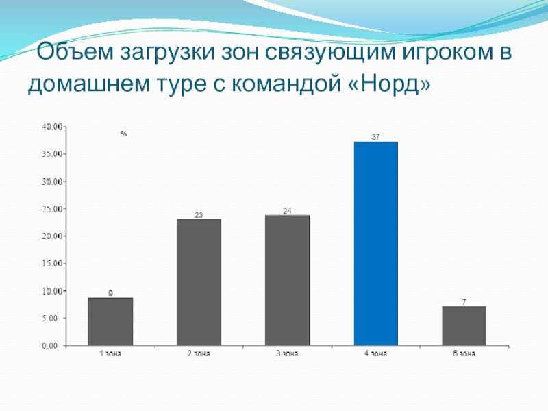 Слайд 16Объем загрузки зон связующим игроком в серии домашнего тура, %