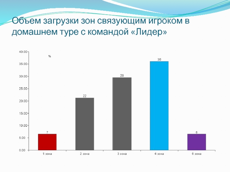 Слайд 20Объем загрузки зон связующим игроком в домашнем туре с командой «Лидер»