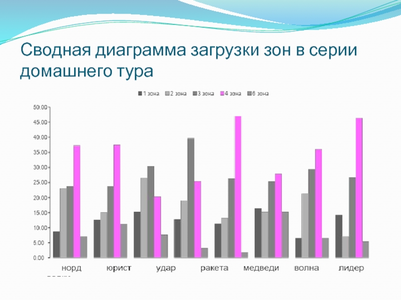 Слайд 21Сводная диаграмма загрузки зон в серии домашнего тура