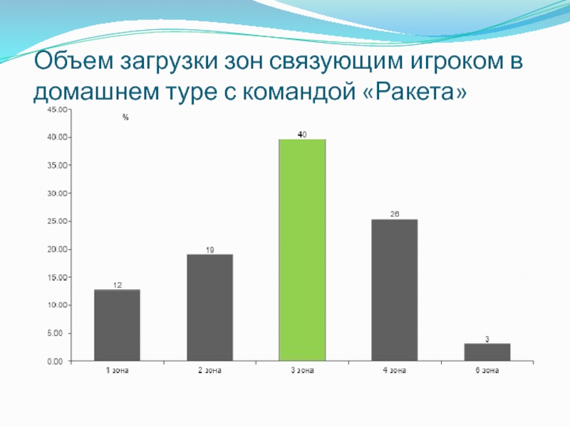 Слайд 18Объем загрузки зон связующим игроком в домашнем туре с командой «Ракета»