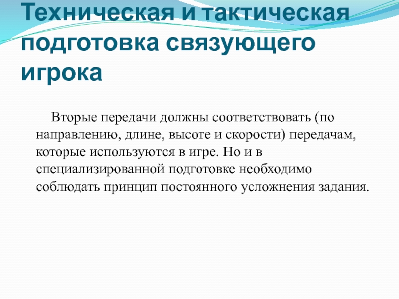 Слайд 10Техническая и тактическая подготовка связующего игрока