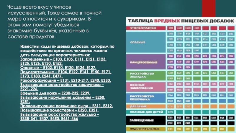 Подозрительные – Е104, Е122, Е141, Е150, Е171, Е173, Е180, Е241, Е477.