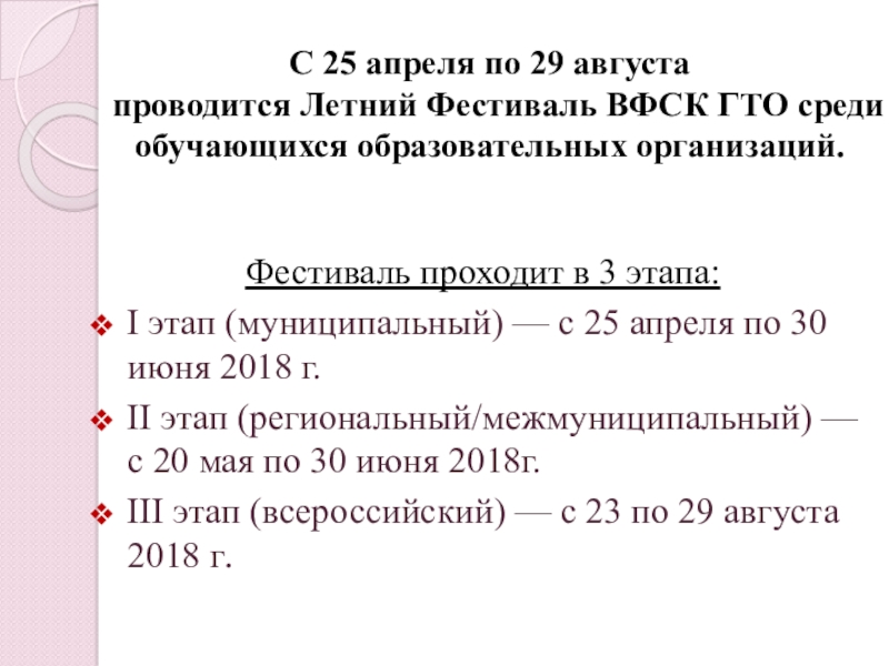I этап (муниципальный) — с 25 апреля по 30 июня 2018 г.
