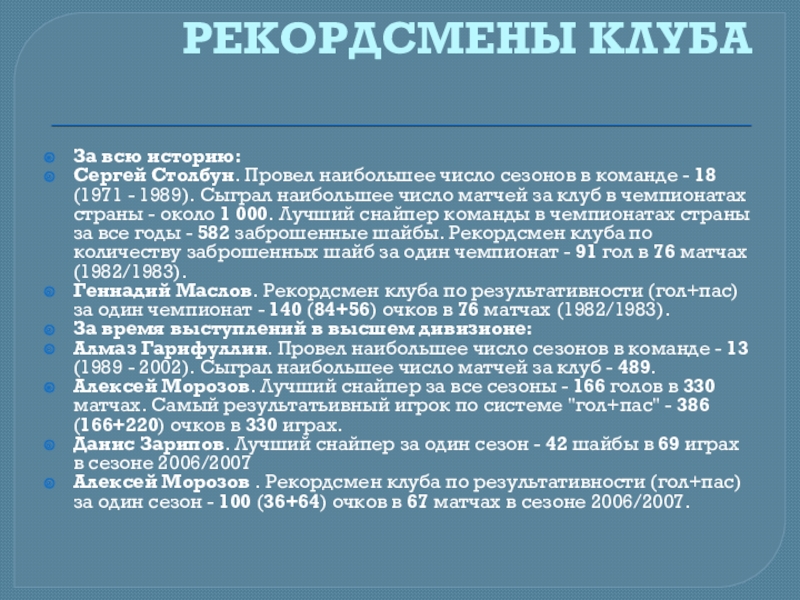 Слайд 8РЕКОРДСМЕНЫ КЛУБА