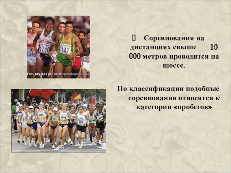 Слайд 3Соревнования на дистанциях свыше 10 000 метров проводятся
