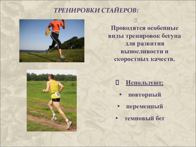 Слайд 8ТРЕНИРОВКИ СТАЙЕРОВ: