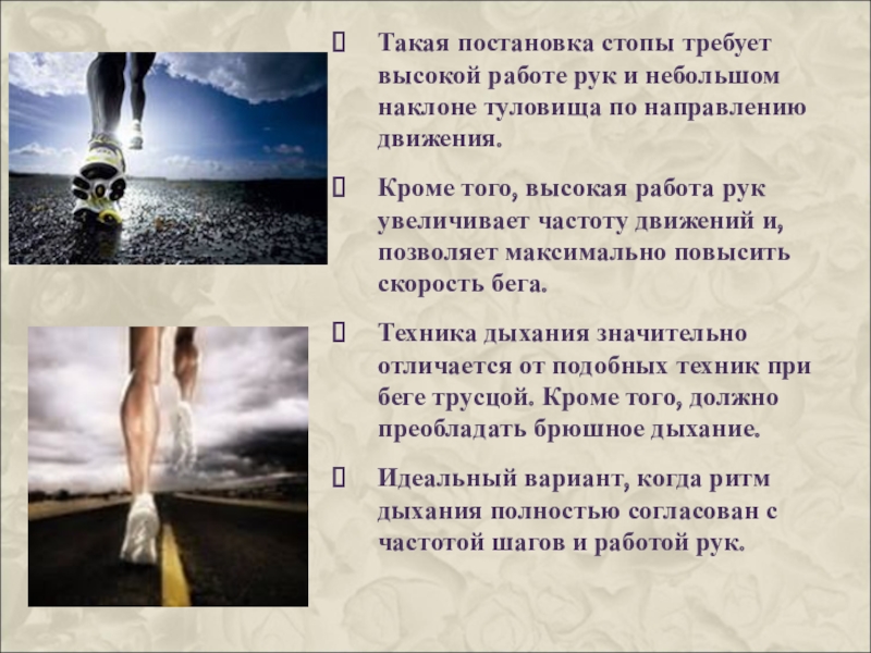 Кроме того, высокая работа рук увеличивает частоту движений и, позволяет максимально повысить скорость бега.