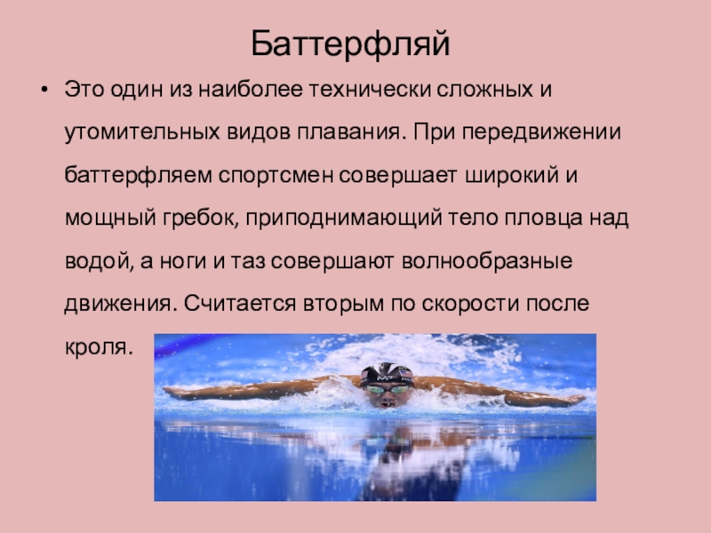 Второй по скорости стиль. Свое название (англ. Butterfly – бабочка) получил