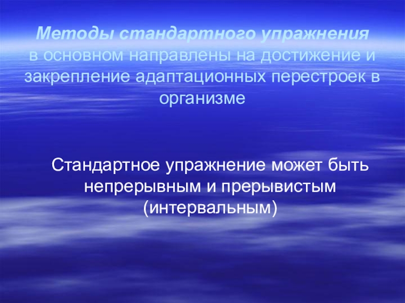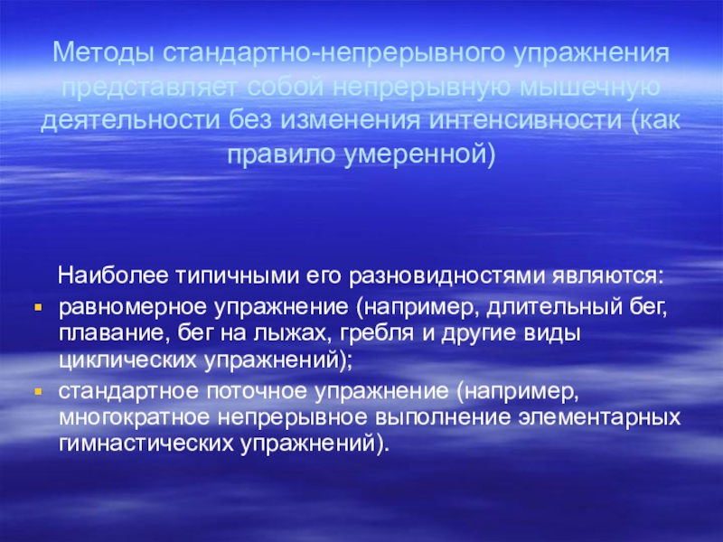 Слайд 16Методы стандартно-непрерывного упражнения представляет собой непрерывную мышечную деятельности без изменения интенсивности