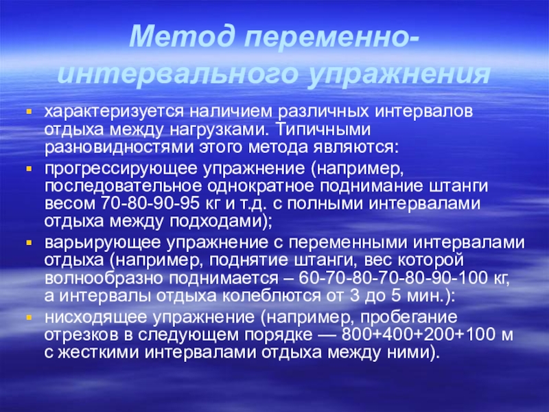 характеризуется наличием различных интервалов отдыха между нагрузками. Типичными разновидностями