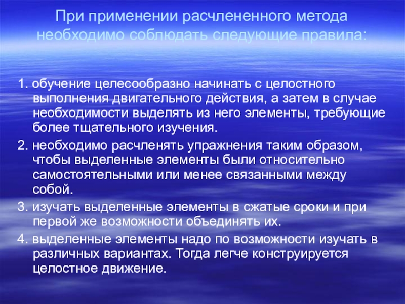 Слайд 12При применении расчлененного метода необходимо соблюдать следующие правила: