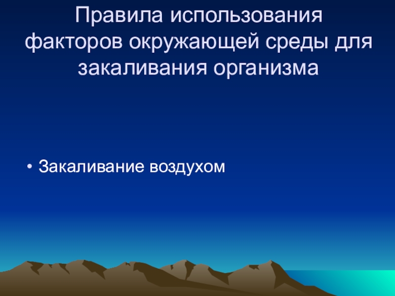 Правила использования факторов окружающей среды для закаливания организма Закаливание воздухом