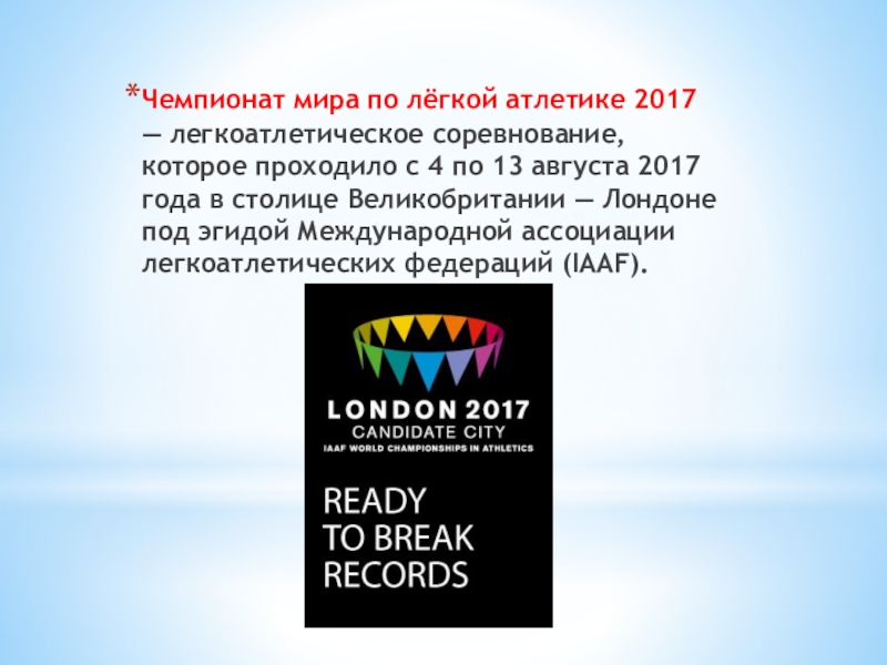Чемпионате мира по легкой атлетике 2017 в Лондоне