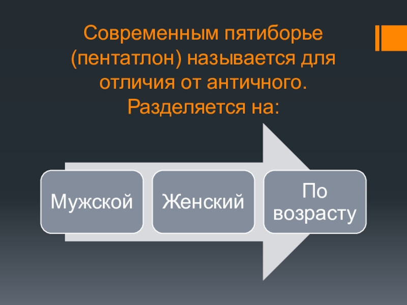 Слайд 3Современным пятиборье (пентатлон) называется для отличия от античного. Разделяется на:
