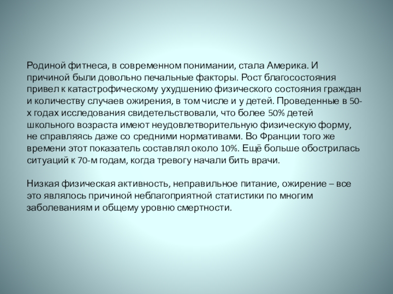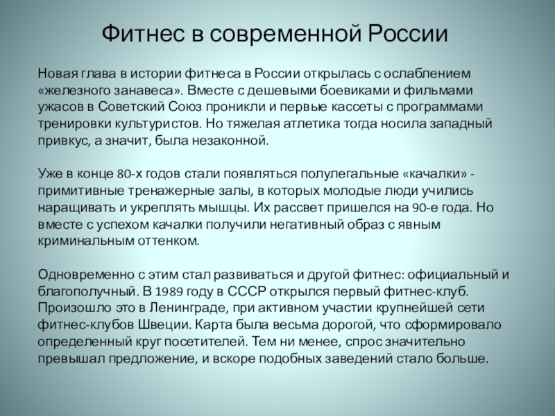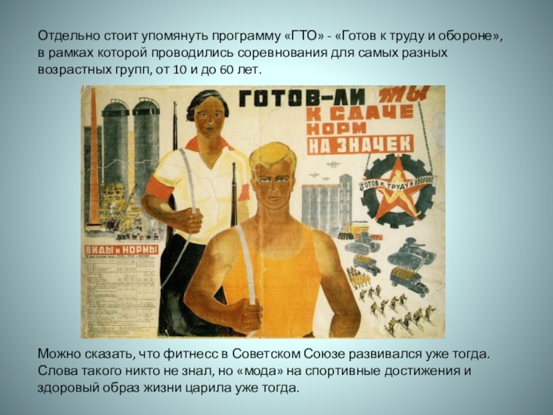 Можно сказать, что фитнесс в Советском Союзе развивался уже тогда. Слова такого никто не знал, но «мода» на спортивные достижения и здоровый образ жизни царила уже тогда.