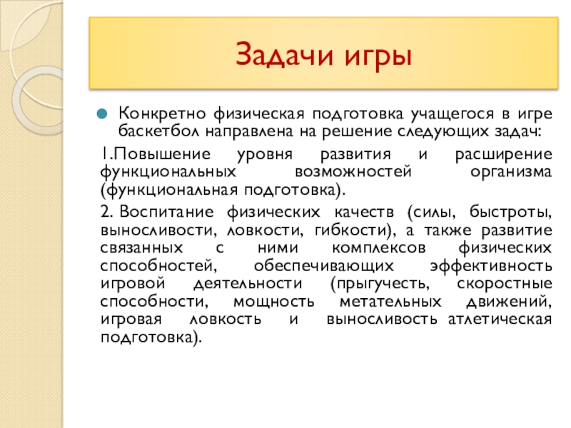 Конкретно физическая подготовка учащегося в игре баскетбол направлена на