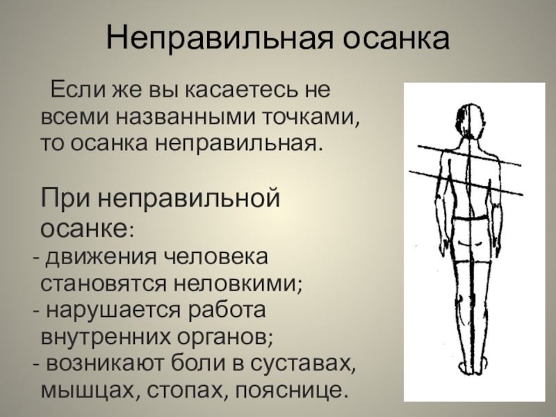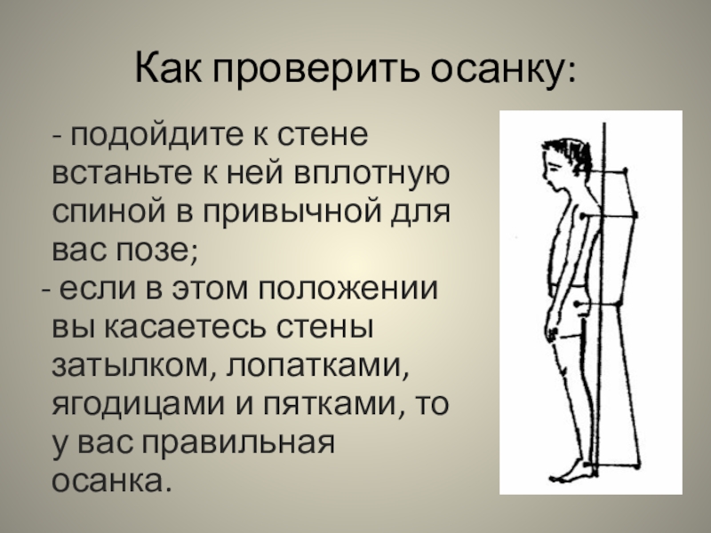 если в этом положении вы касаетесь стены затылком, лопатками, ягодицами и пятками, то