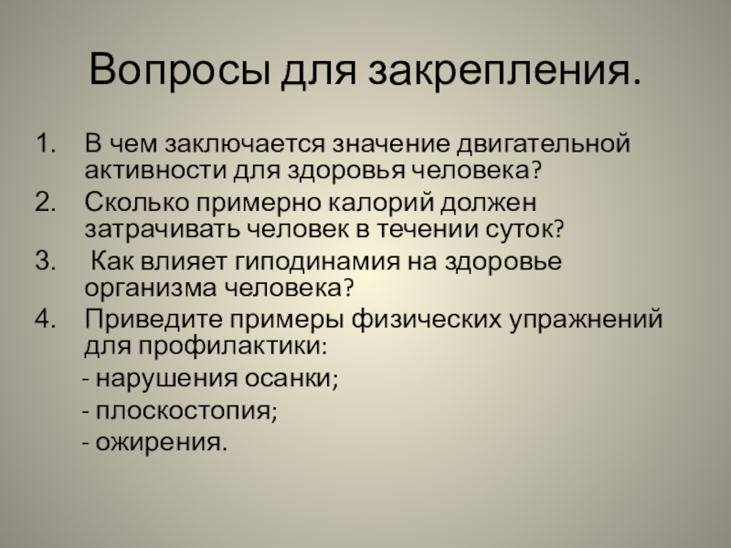 поэтому для сохранения здоровья человеку необходима двигательная активность.