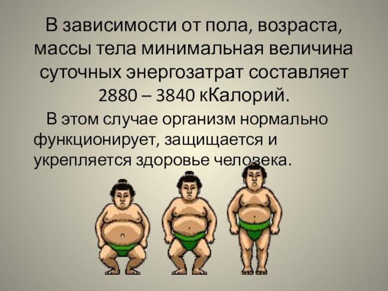 В зависимости от пола, возраста, массы тела минимальная величина суточных энергозатрат