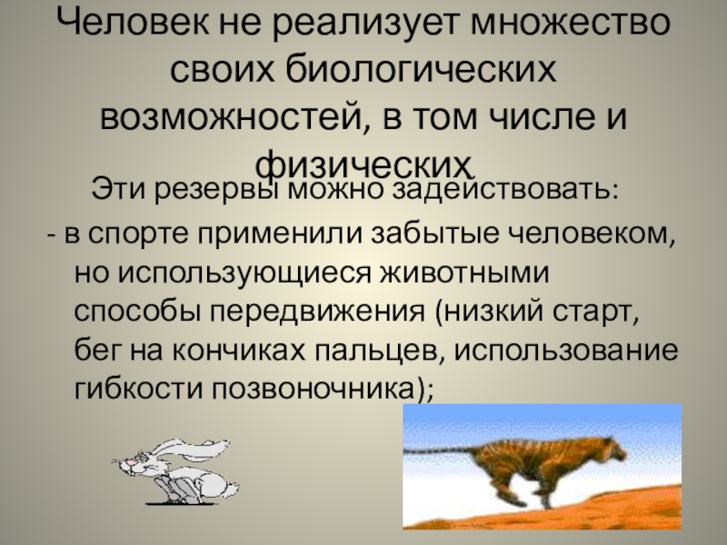 Человек не реализует множество своих биологических возможностей, в том числе и