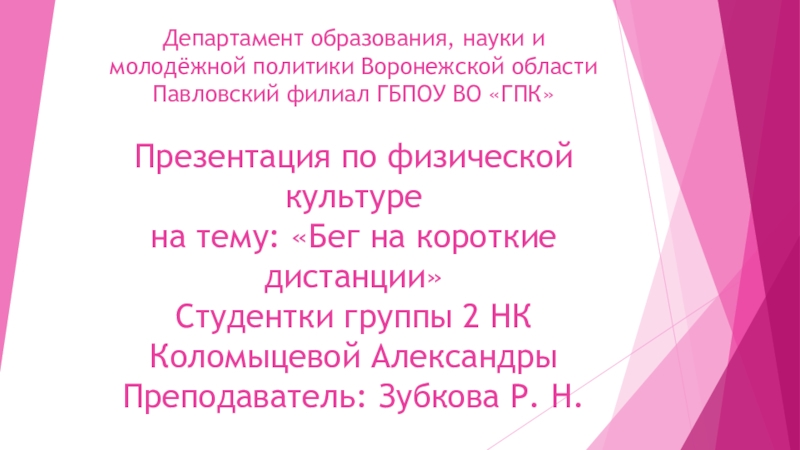на тему: «Бег на короткие дистанции»