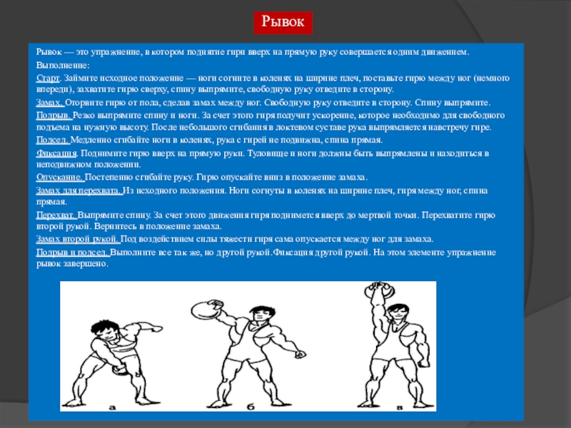 Рывок — это упражнение, в котором поднятие гири вверх на прямую