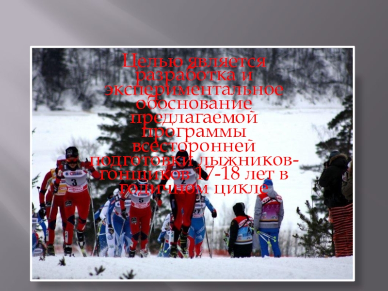 Целью является разработка и экспериментальное обоснование предлагаемой программы всесторонней подготовки лыжников-гонщиков