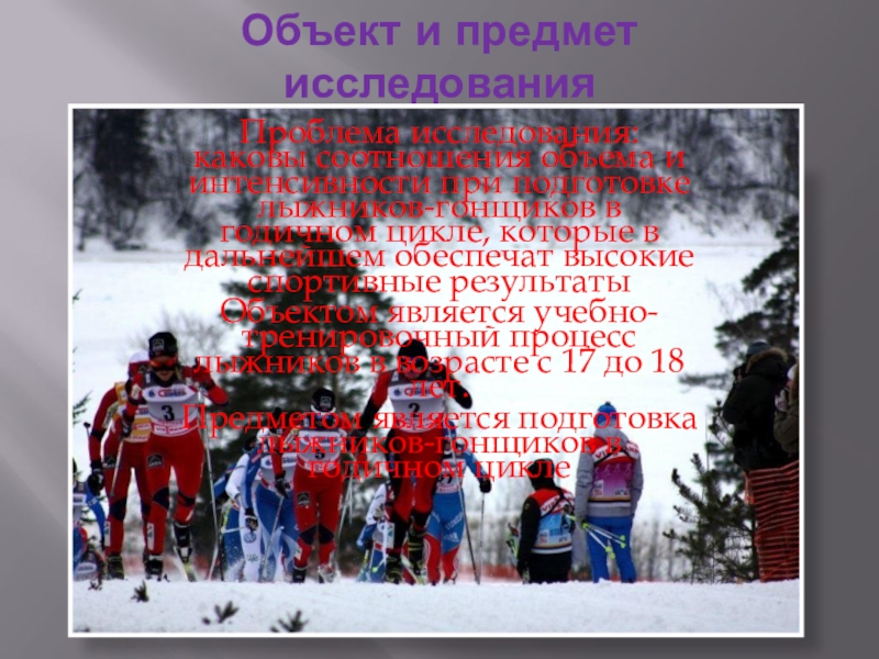 Объектом является учебно-тренировочный процесс лыжников в возрасте с 17 до 18 лет.