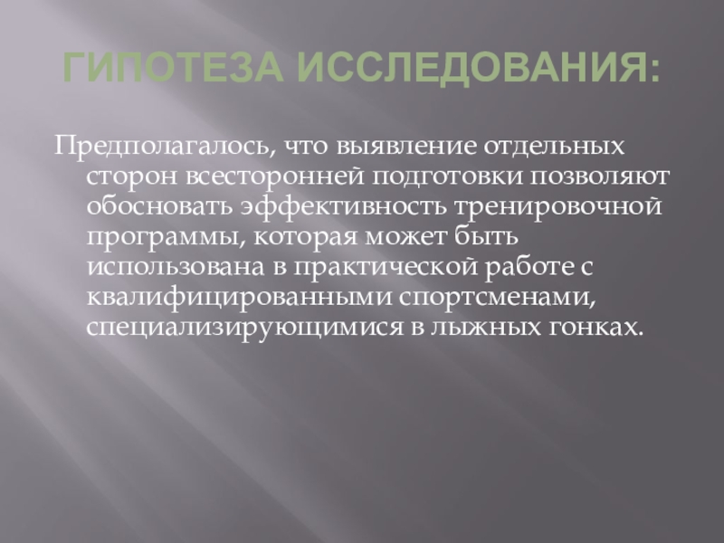 Предполагалось, что выявление отдельных сторон всесторонней подготовки позволяют обосновать эффективность