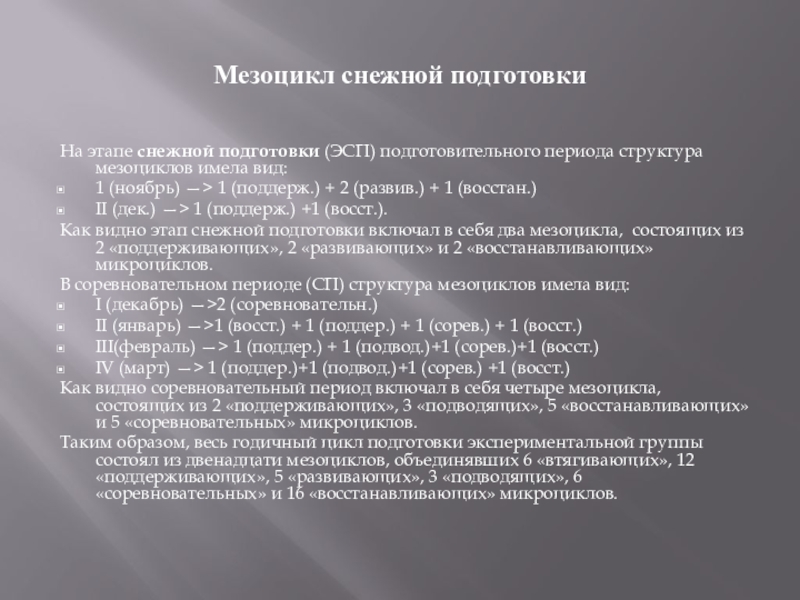 Слайд 13Мезоцикл снежной подготовки