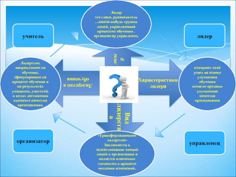Лидерство, направленное на обучение, сфокусировано на процессе обучения и на результатах учащихся, учителей, в целях достижения высокого качества преподавания.