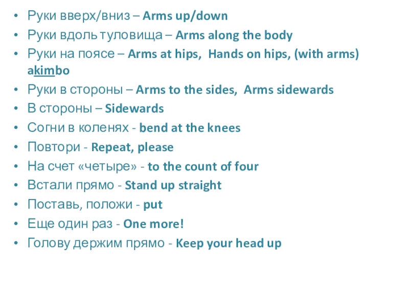 Руки на поясе – Arms at hips, Hands on hips, (with arms) akimbo