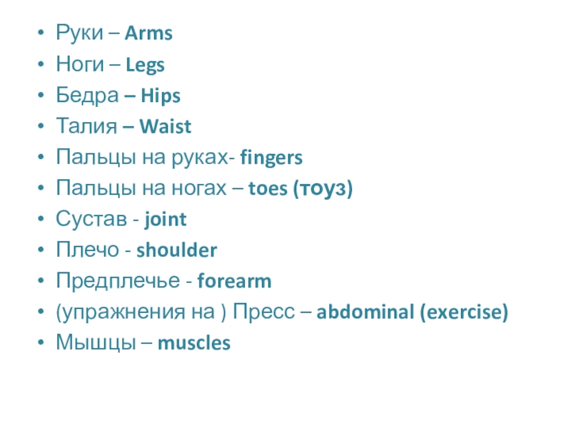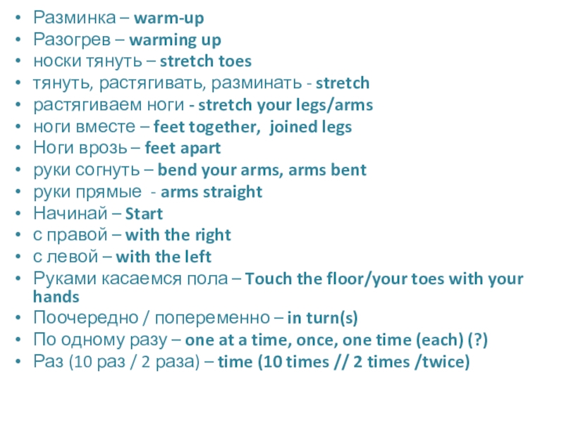 Руками касаемся пола – Touch the floor/your toes with your hands