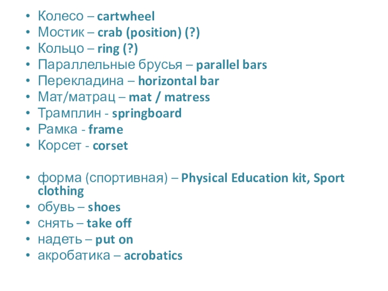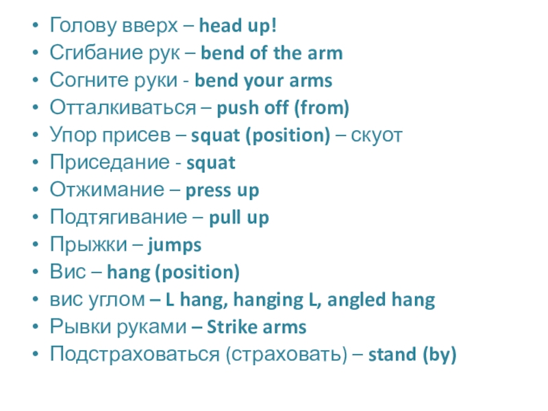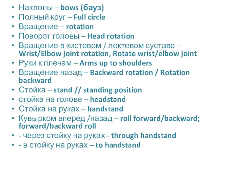 Кувырком вперед /назад – roll forward/backward; forward/backward roll