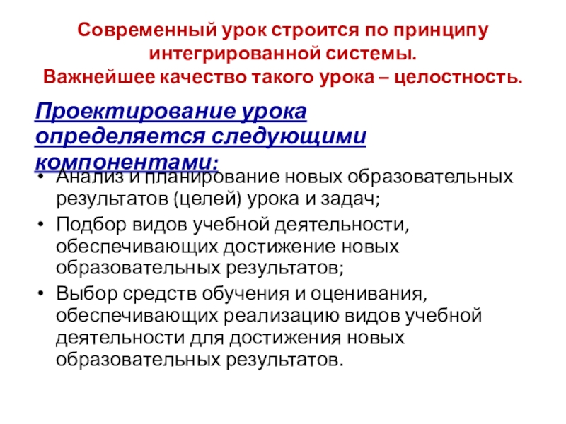 Слайд 7Современный урок строится по принципу интегрированной системы.